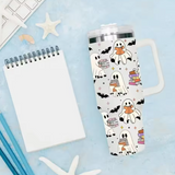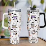 π Ghost Reading Halloween Tumbler 40oz with Handle & Straw